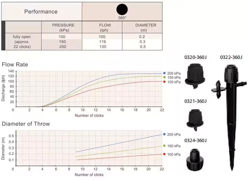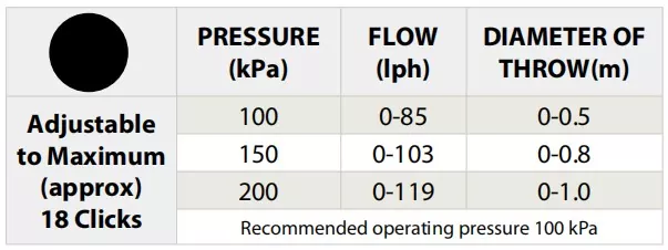 การหมุนฝา Mini Bubbla ช่วยให้สามารถปรับอัตราการไหลและเส้นผ่านศูนย์กลางของการขว้างได้พร้อมกัน เครื่องพ่นสเปรย์ Twista แบบปรับได้นี้มีรูปแบบร่มสม่ำเสมอซึ่งค่อยๆ ฉีดน้ำไปที่บริเวณรากของพืช