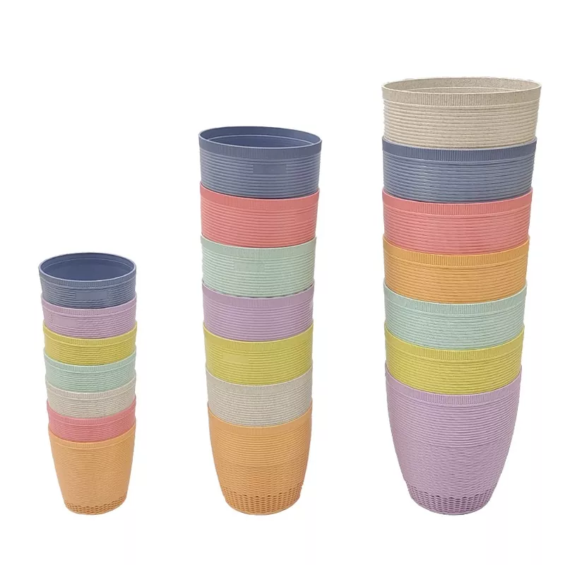 กระถางต้นไม้พลาสติกฟางข้าวสาลี 6 นิ้ว 3 ชิ้นพร้อมจานชุด