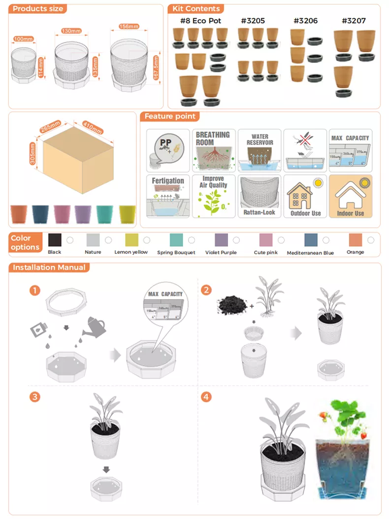 เพื่อตอบสนองความต้องการที่แตกต่างกันของผู้บริโภค เราจึงได้เปิดตัวกระถางดอกไม้นี้ในรูปแบบการขายแบบผสมผสาน รายละเอียดเฉพาะมีดังนี้
