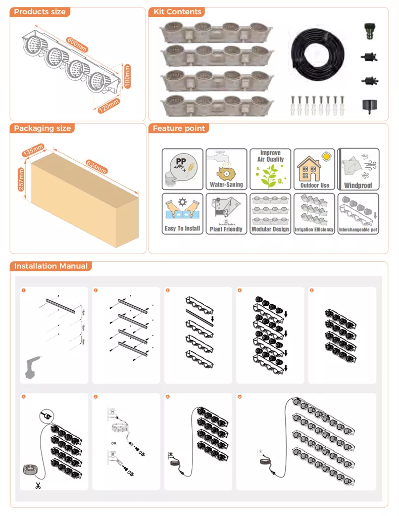 ชุดเริ่มต้นสวนแนวตั้งเป็นชุดเริ่มต้นที่ง่ายและรวดเร็วสำหรับเจ้าของบ้านที่ต้องการสร้างสวนแนวตั้งด้วยระบบผนังสีเขียวมืออาชีพ Watex ชุดนี้ประกอบด้วยแถบแขวน 4 เส้น กระถาง Watex #8 4 ใบ และหม้อชั้นใน 16 ใบ